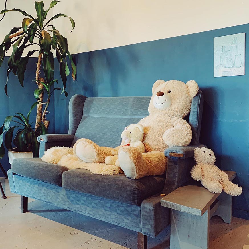 Καθίστε αναπαυτικά σε ένα μαξιλάρι γύρω από τα χαμηλά τραπεζάκια ή «στριμωχτείτε» σε έναν από τους καναπέδες στο πίσω μέρος, όσο περιμένετε το διπλό naked espresso shot σας.